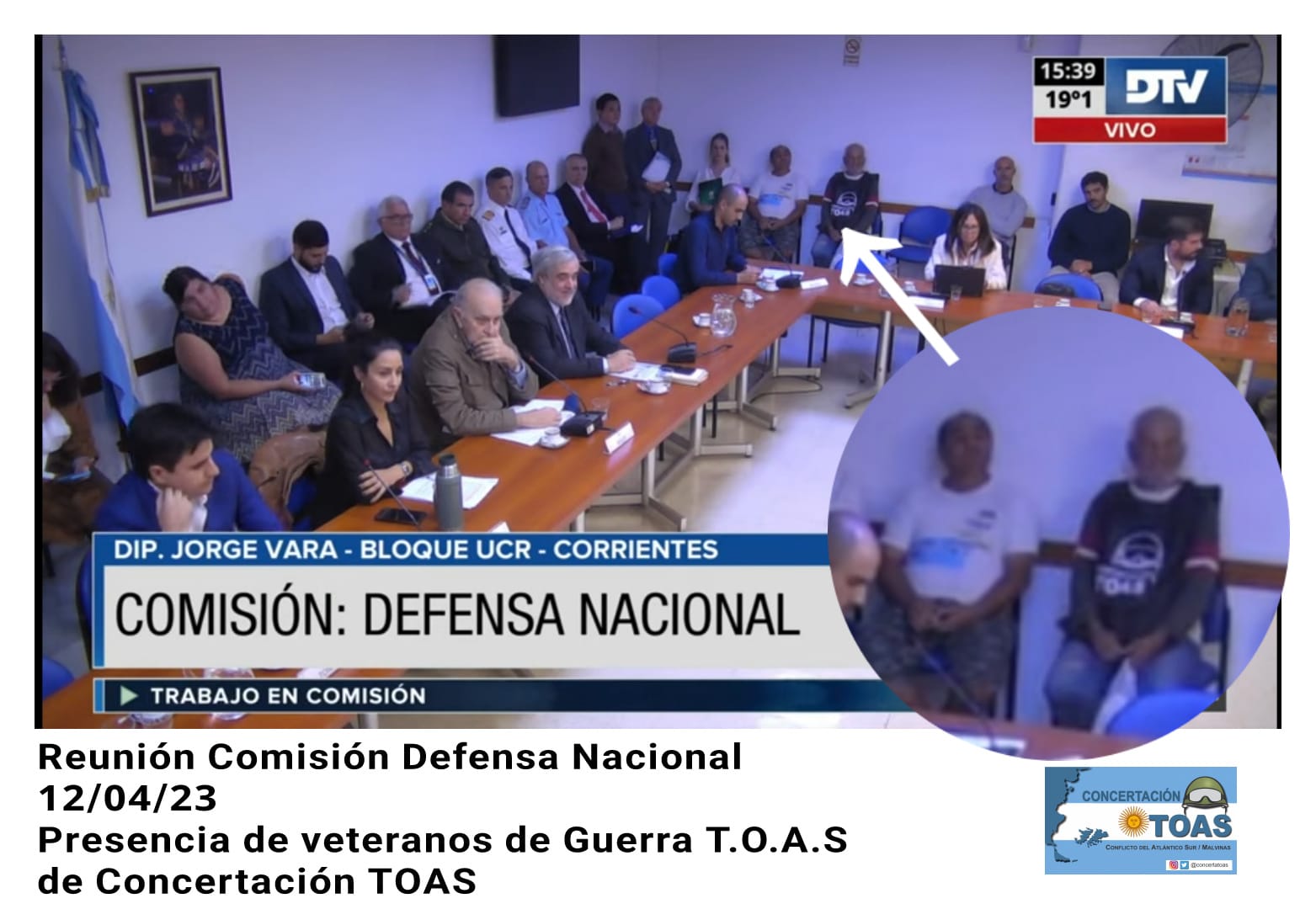 Pese a tener conocimiento previo que, en la sesión de la Comisión de Defensa, no iba a tratarse el tema de la Ley que devolverá la veteranía hurtada a los VGM continentales, José Luis Zapata y Horacio Graneros se hicieron presentes, con insignias de la lucha TOAS, para recordarles a los legisladores la necesidad que traten ya el proyecto 813/diputados/2023.