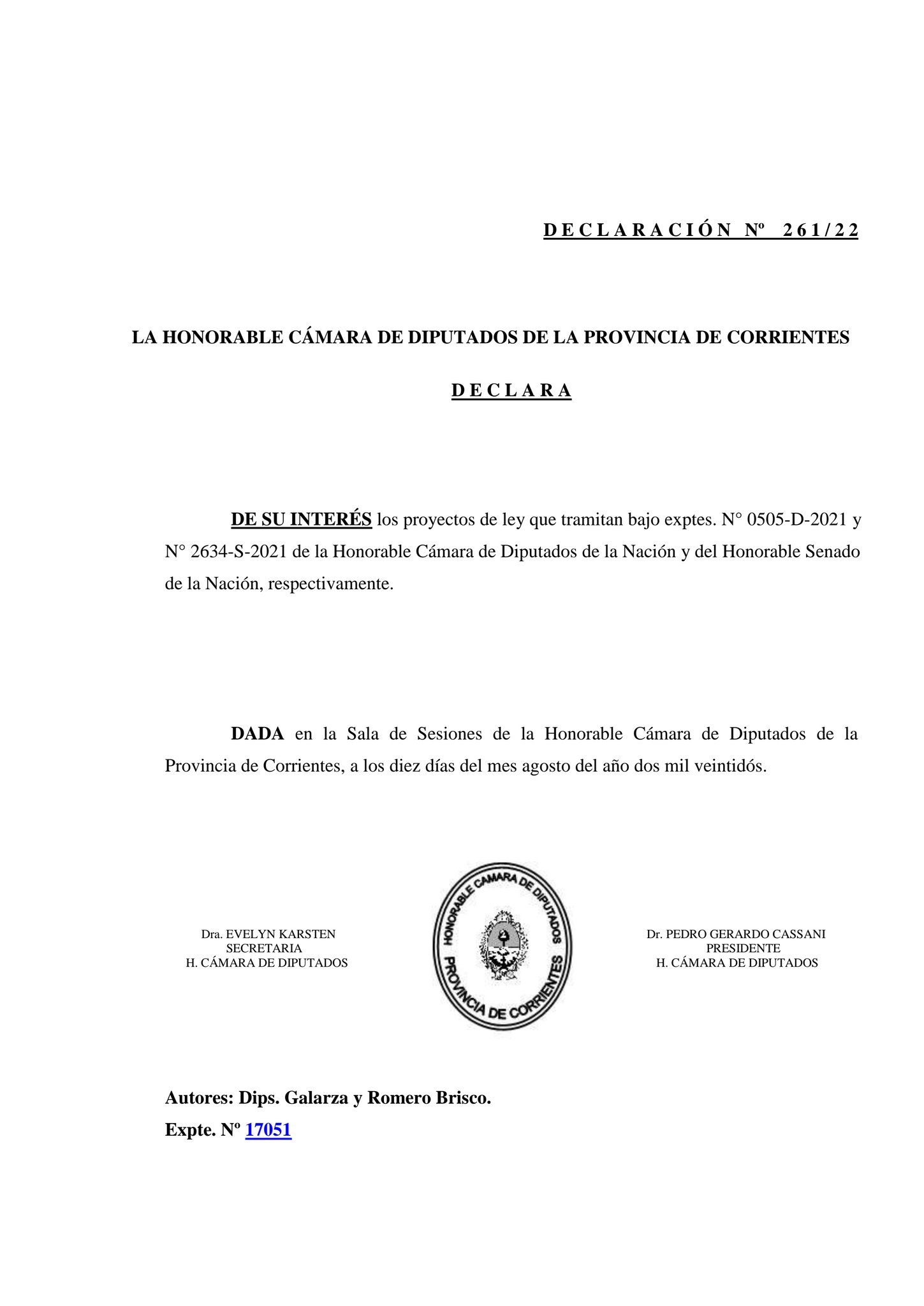 La legislatura de la provincia de Corrientes declaró de interés los proyectos 0505-D-2021 y 2634-S-21