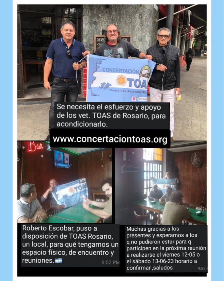 Por iniciativa del camarada Roberto Escobar, que puso a disposición un salón, los TOAS rosarinos ya tienen un espacio para reunirse a debatir y llevar ideas e iniciativas para que la Ley TOAS sea una realidad en poco tiempo más.